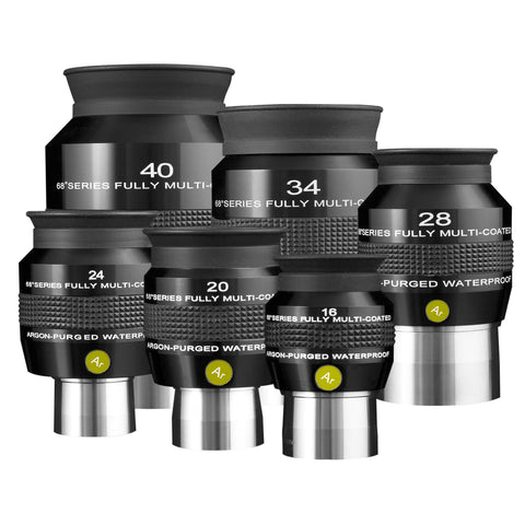 This kit includes an 68° 16mm, 68° 24mm and 68° 34mm Argon-Purged Waterproof Eyepieces and a soft sided case. These eyepieces are individually boxed in our Will Tirion "famous" star map box along with the soft-sided case inside an outer box.