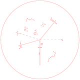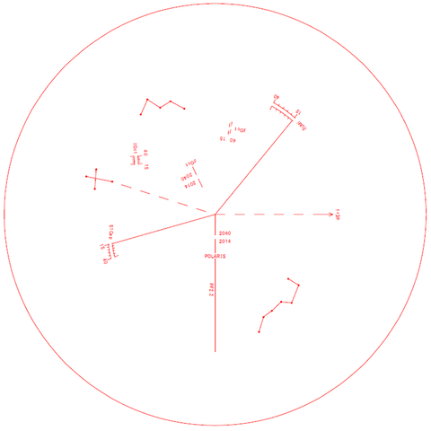 Reticle scale 3-star alignment method, with precession correction (until 2040), North: Polaris, Delta Umi, 51 Cep, South: Sigma, Tau and Chi Octantis