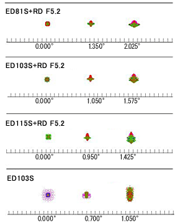 F-ratio ED81S / 625mm(F7.7)→419mm(F5.2), ED81S II / 625mm(F7.7)→419mm(F5.2), ED103S / 795mm(F7.7)→533mm(F5.2), ED115S / 890mm(F7.7)→596mm(F5.2)